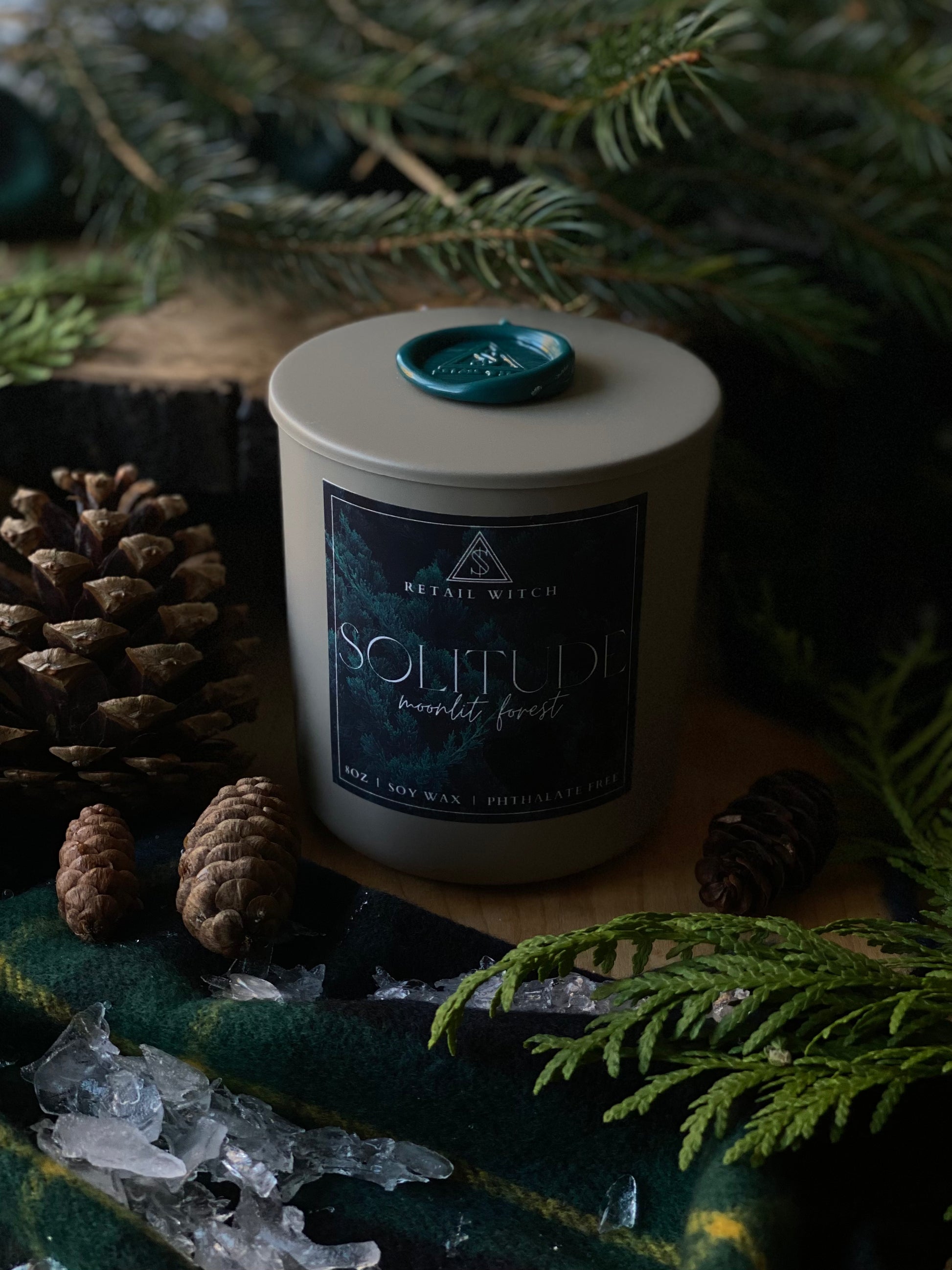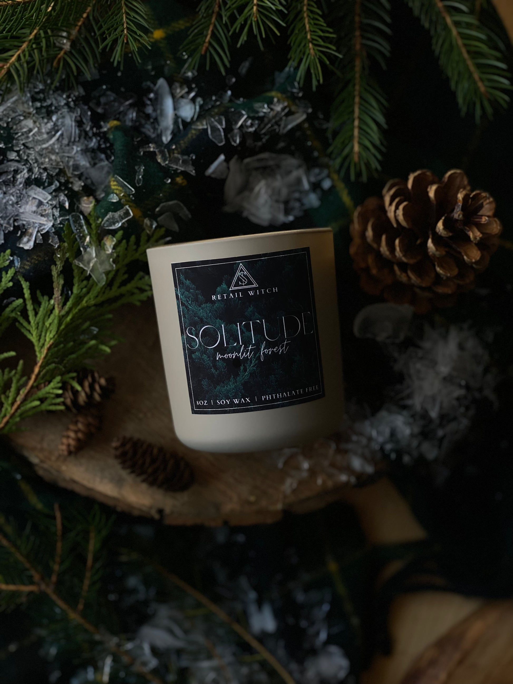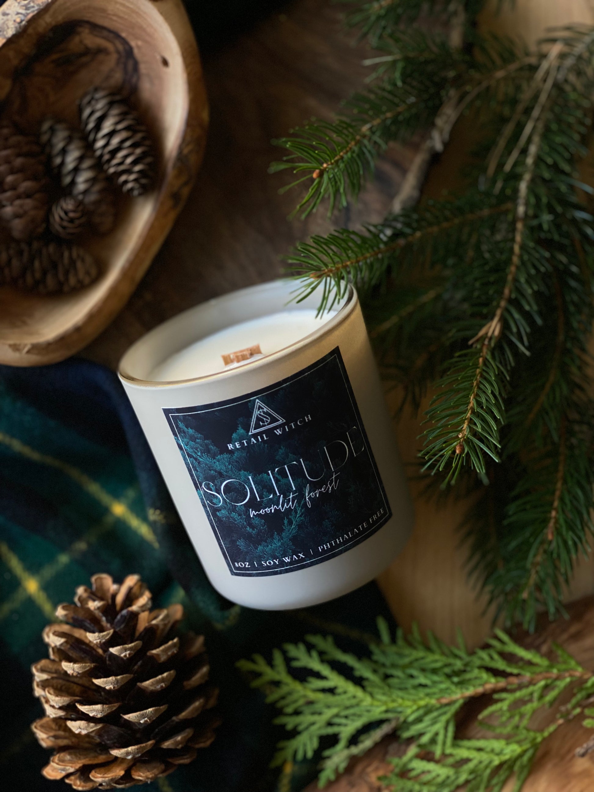 Step into the quiet beauty of a moonlit winter forest. Solitude captures the serene essence of crisp night air, where the calming scent of juniper berries mingles with fresh eucalyptus and white pine, wrapped in the soft embrace of winter birch. It’s the peaceful stillness you feel when snowflakes gently fall, reflecting moonlight and turning the night into a silver dreamscape. This candle evokes the tranquility of walking alone beneath the stars, free from the noise of the world, reconnecting with yourself, and finding peace in stillness.