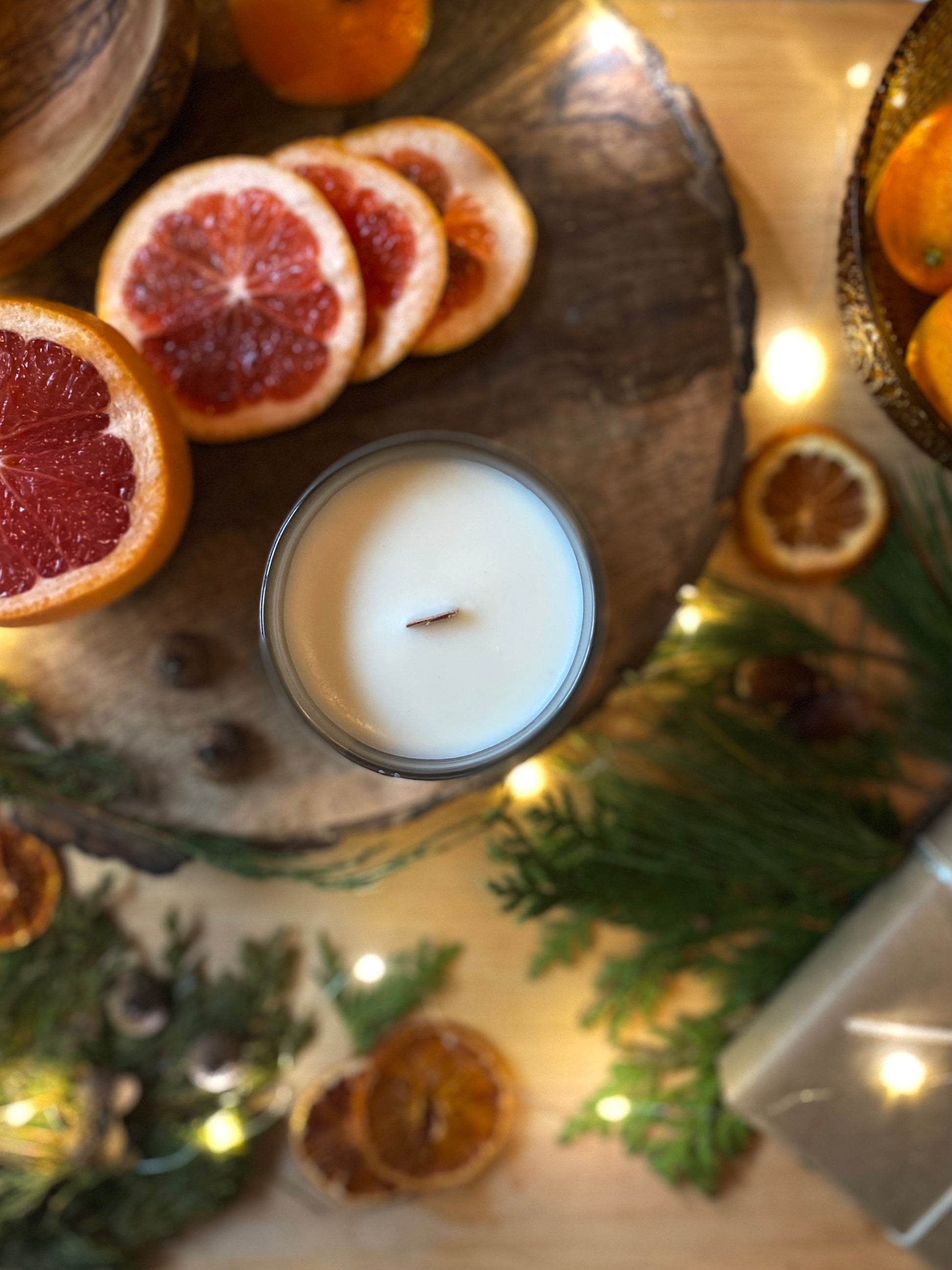 Welcome the return of light with Solstice, a celebration of the winter solstice that infuses your space with vibrant energy and the promise of renewal. As the longest night gives way to brighter days, this candle combines juicy tangerine and tangy grapefruit with the enchanting aroma of fir balsam and forest pine. The bright citrus notes dance with the grounding essence of winter woods, awakening your senses and filling your spirit with joy and anticipation.
